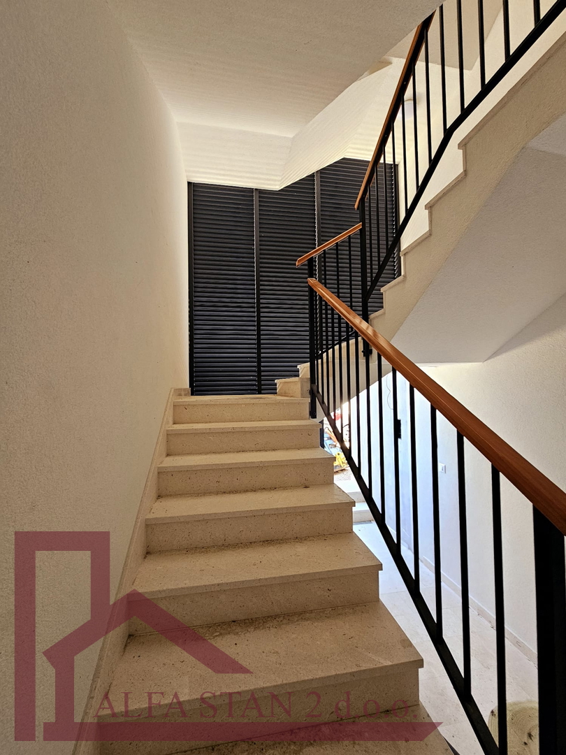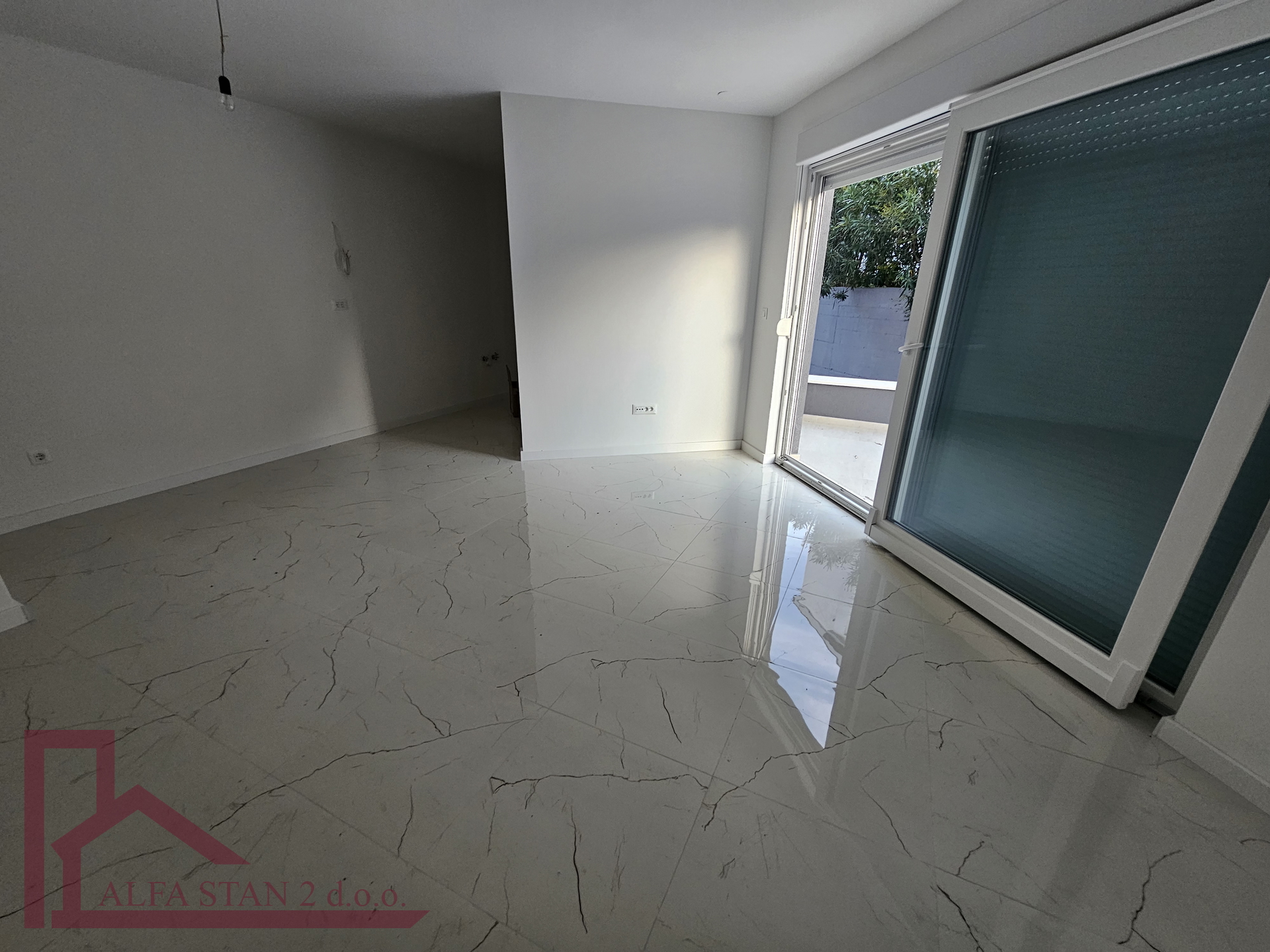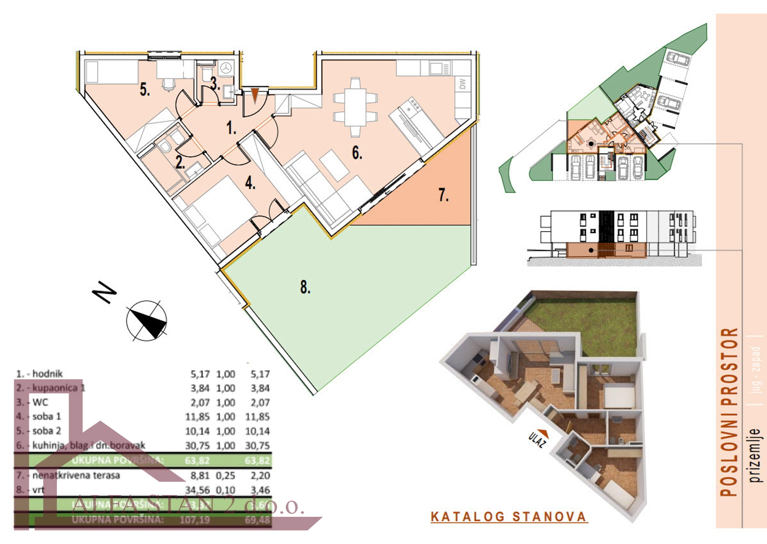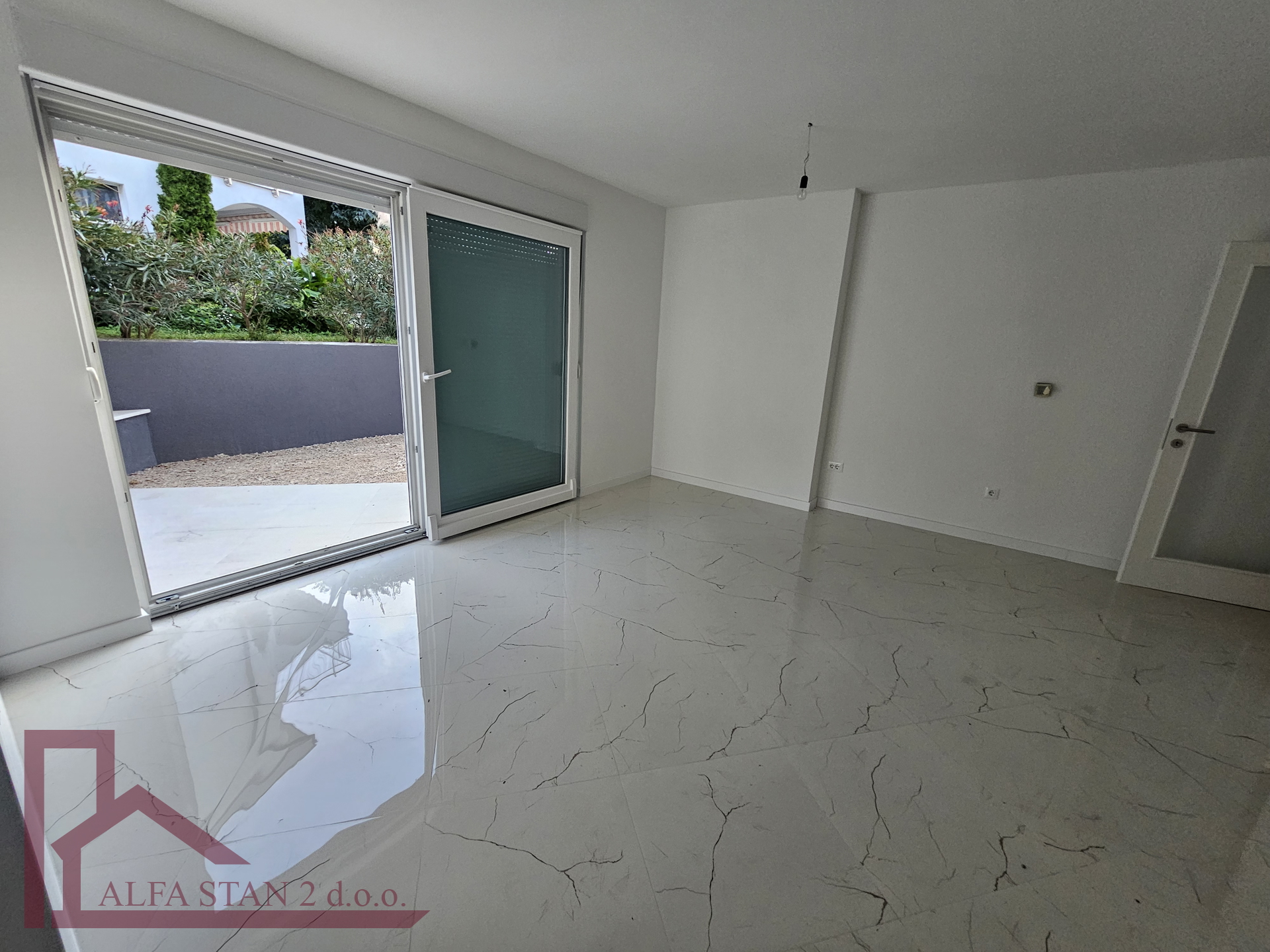 As an agency, we mediate in the sale of a two-bedroom apartment-business space with an internal area of ​​63.82 m2 + terrace of 8.81 m2 and garden of 34.56 m2 located on the ground floor of a newly built building. The building is located in a dead end street, 200 meters from the main road Split-Omiš, 300 meters from the sea and beautiful pebble beaches. The apartment has two bedrooms, a bathroom, toilet, and a kitchen, dining room and living room are in one space with access to the terrace and garden.