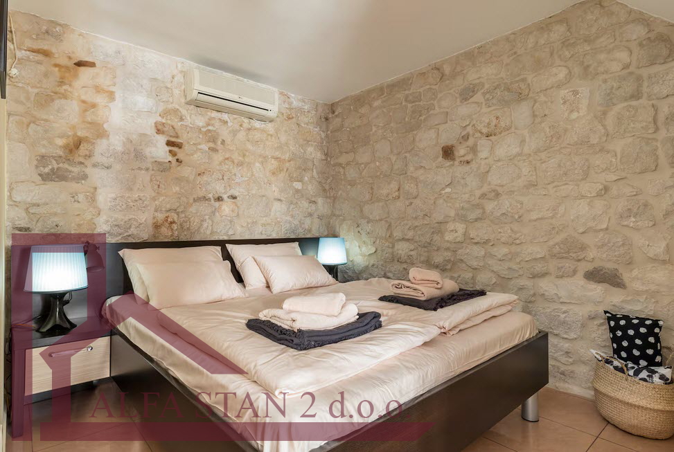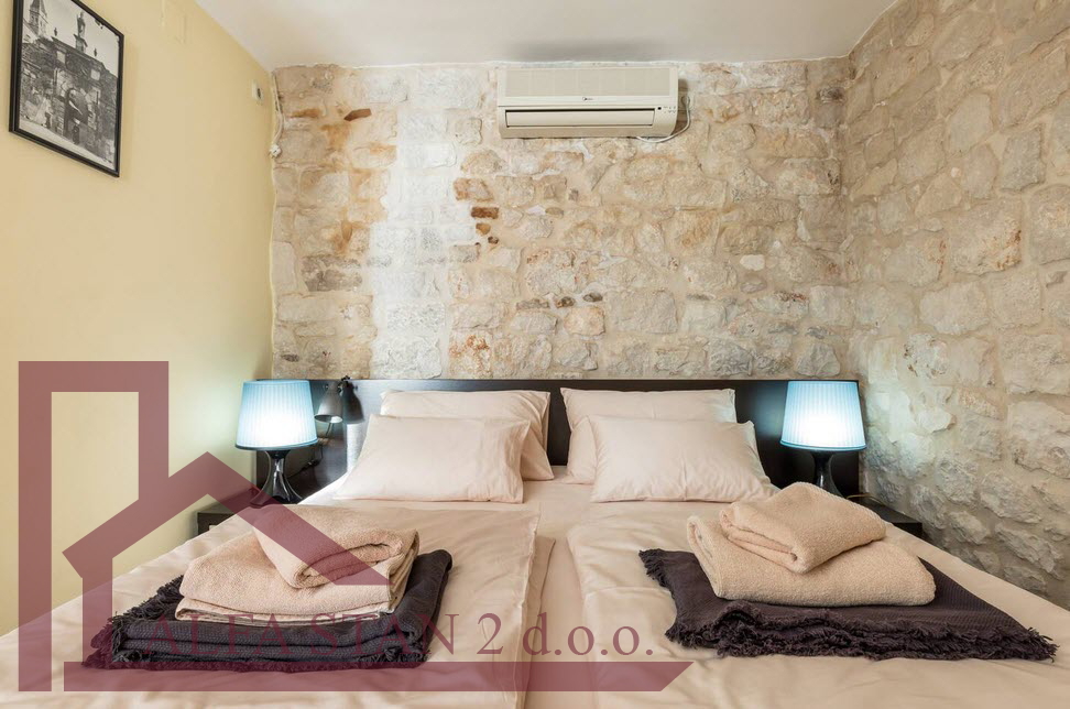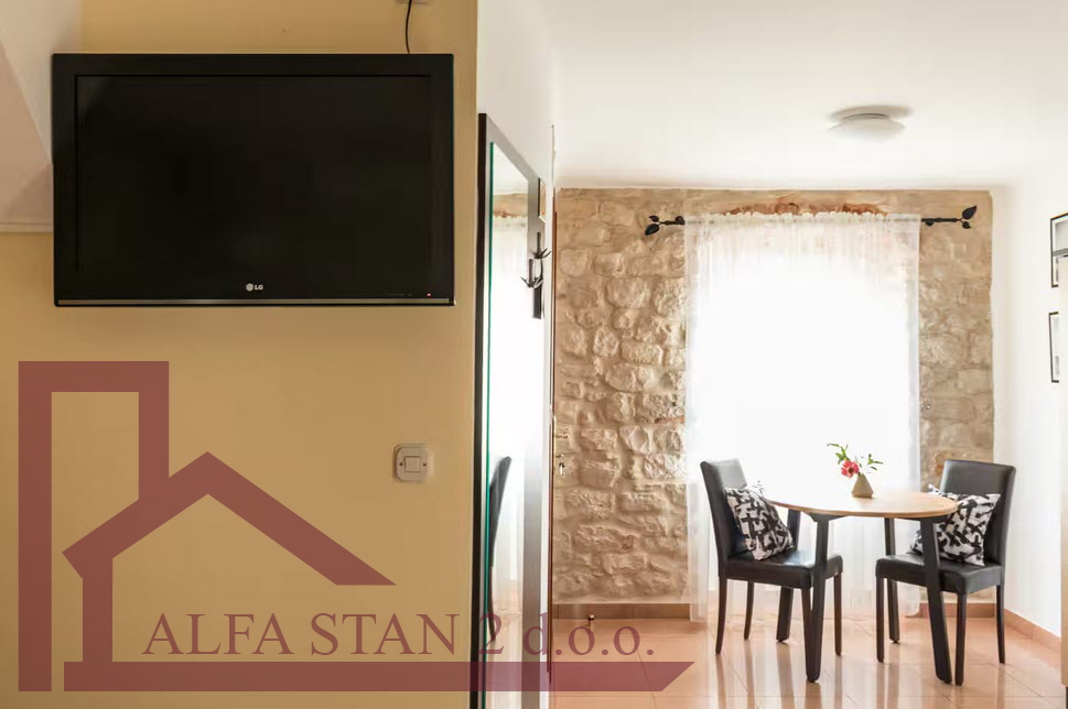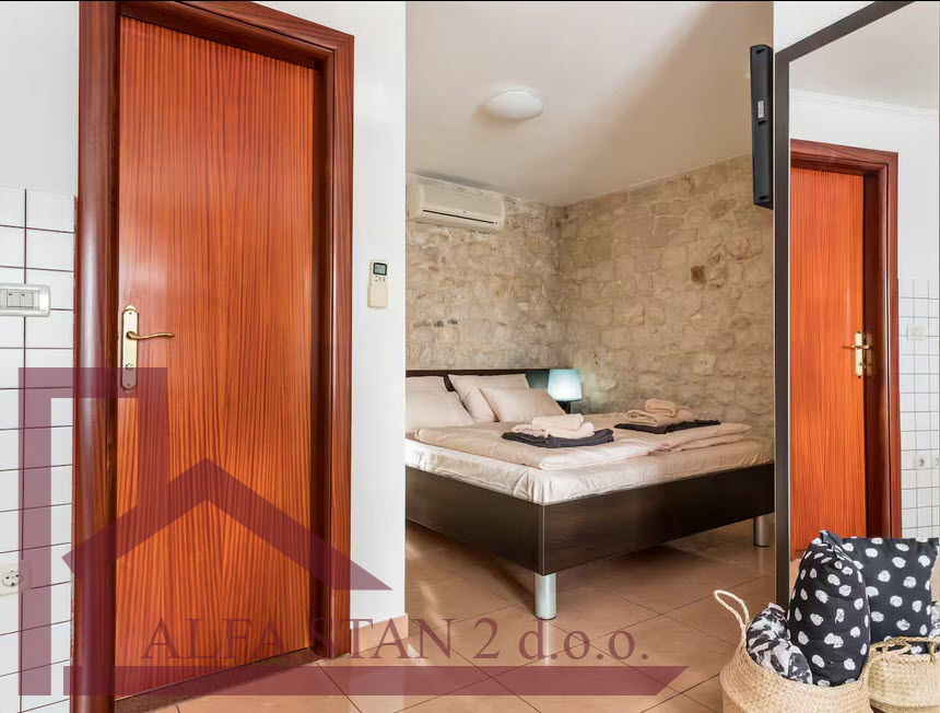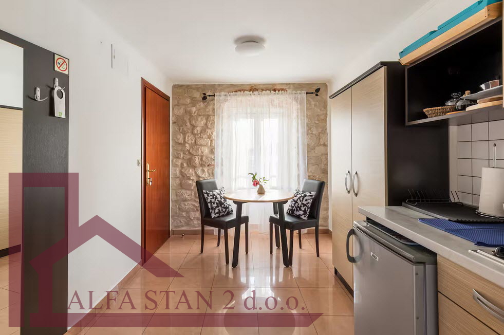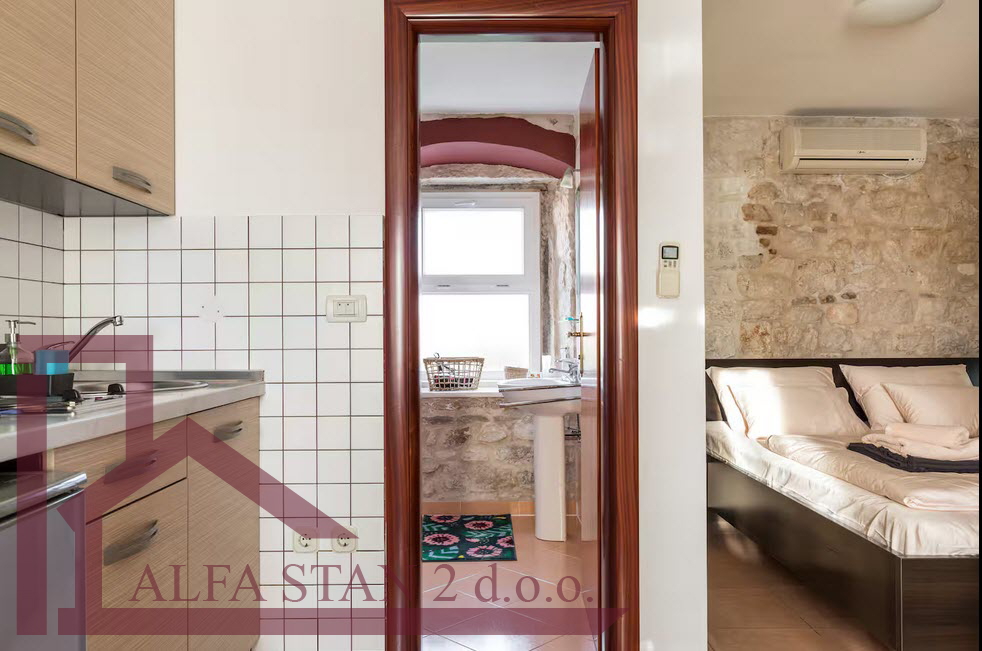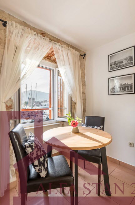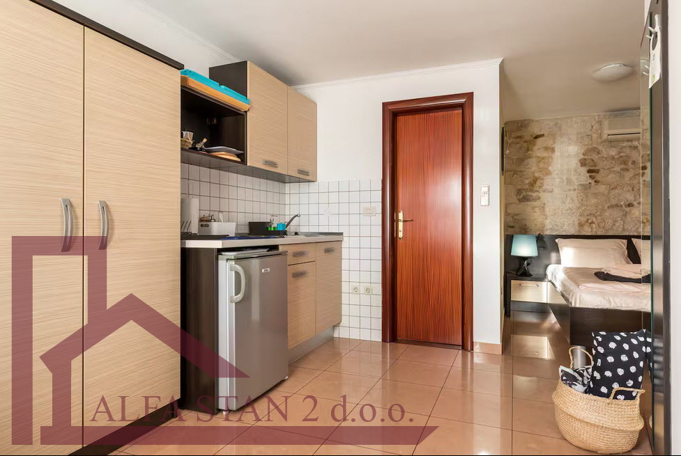 Kao agencija posredujemo u iznajmljivanju lijepo uređene garsonjere na 1. katu objekta. Nalazi se u neposrednoj blizini trogirske rive, nedaleko Aci Marine Trogir. Stan je kompletno opremljen. Ima kupatilo wc i prostoriju u kojoj je smješten bračni krevet, stol za ručavanje i kuhinja. Parking je osiguran ispred objekta.