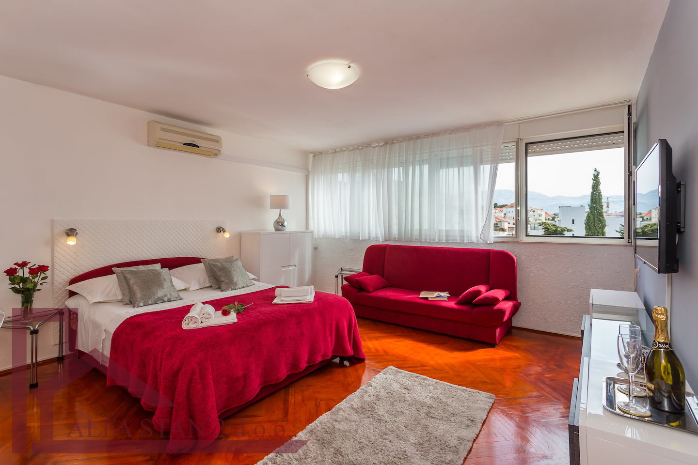 Kompletno je opremljen sa: 2 LCD TV, 2 klima uređaja, internet , parking ispred zgrade.Iznajmljuje se za max 2 osobe do 31.05. sljedeće godine.