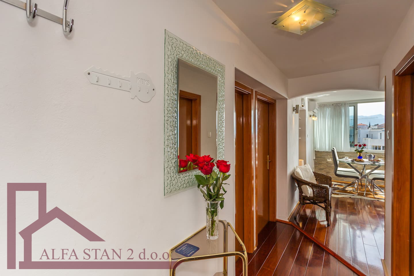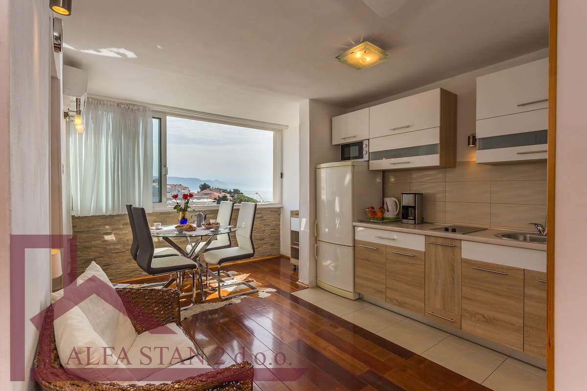 Kao agencija posredujemo u najmu komfornog dvosobnog stana s pogledom na more. Nalazi se na predjelu Zenta/Bačvica i 100 metara je udaljen od lijepe pješčane plaže , velike marine i teniskih terena i restorana. Šetnicom se preko poznatih splitskih plaža za 10 minuta dođe do splitske rive. Stan ima 60 m2 a sastoji se od: