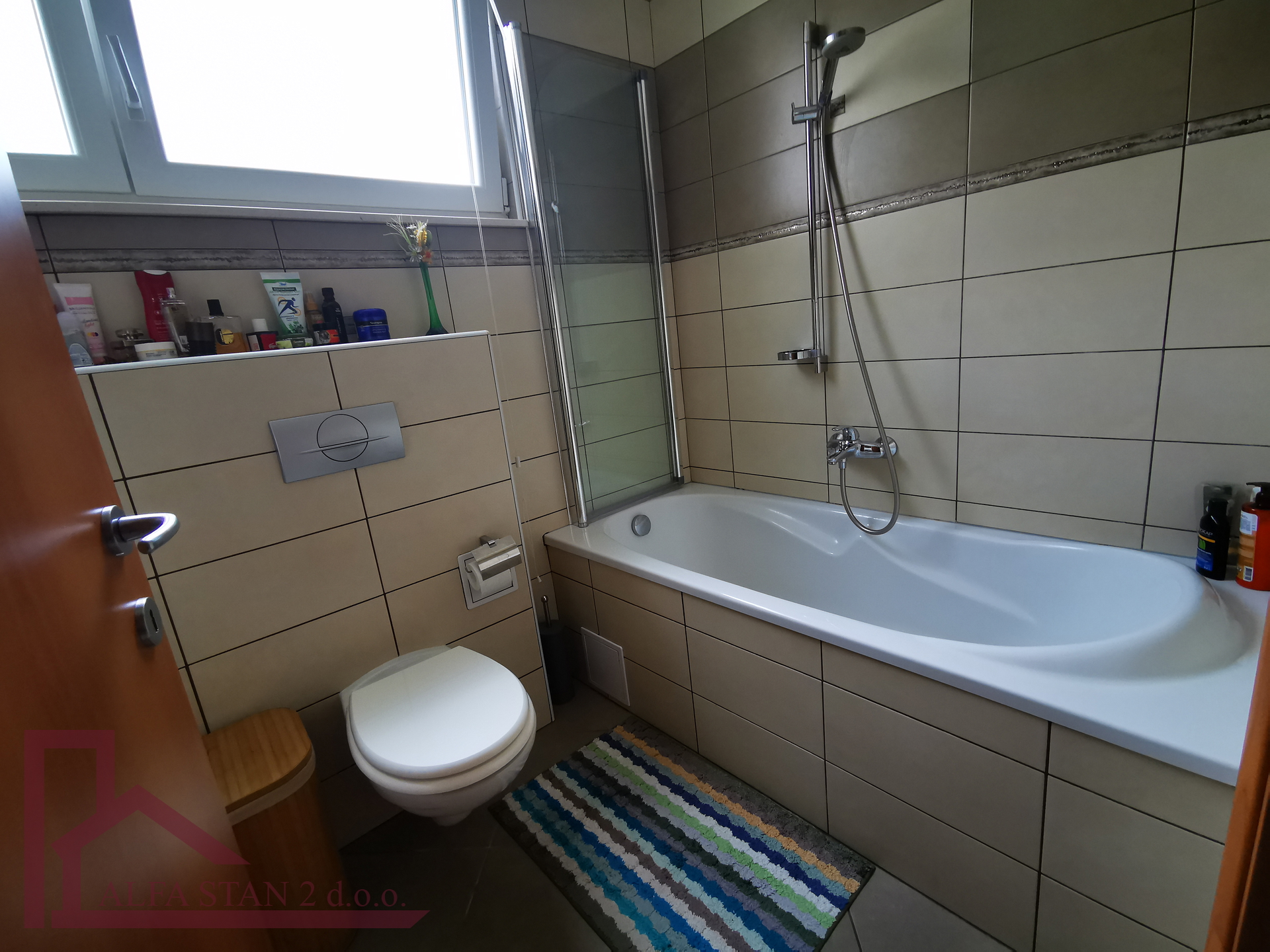 Sastoji se od ulaznog prostora, dvije velike spavaće sobe, kuhinje, dnevnog boravka s blagovaonicom, dvije kupaonice , predprostora i terase.